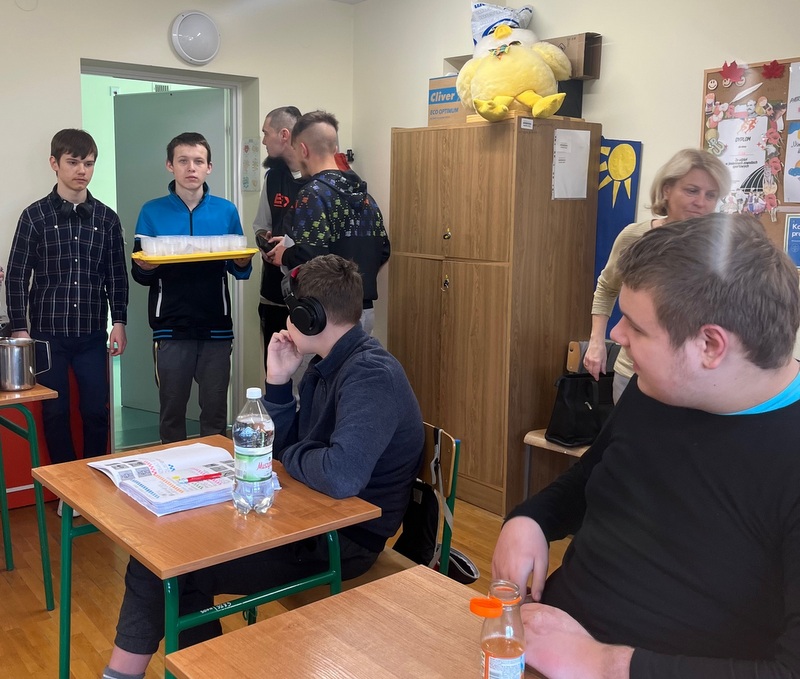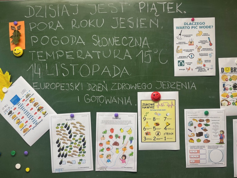 Europejski Dzień Zdrowego Jedzenia i Gotowania co roku obchodzony jest 8 listopada. W tym roku przypadł w sobotę, w naszej szkole odbył się więc w dniach 13-14 listopada. Celem święta jest promowanie zdrowego jedzenia, dobrych nawyków żywieniowych, regularnego spożywania posiłków, informowanie o konsekwencjach złej diety. Uczniowie z klasy branżowej (II cB i III cB) i przysposabiającej do pracy (IIIg i Ib) odwiedzali klasy częstując świeżo wyciśniętym sokiem jabłkowym. Na kartach pracy przedstawili jakie znaczenie dla organizmu człowieka ma zdrowe odżywianie.