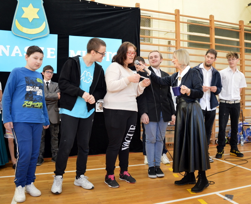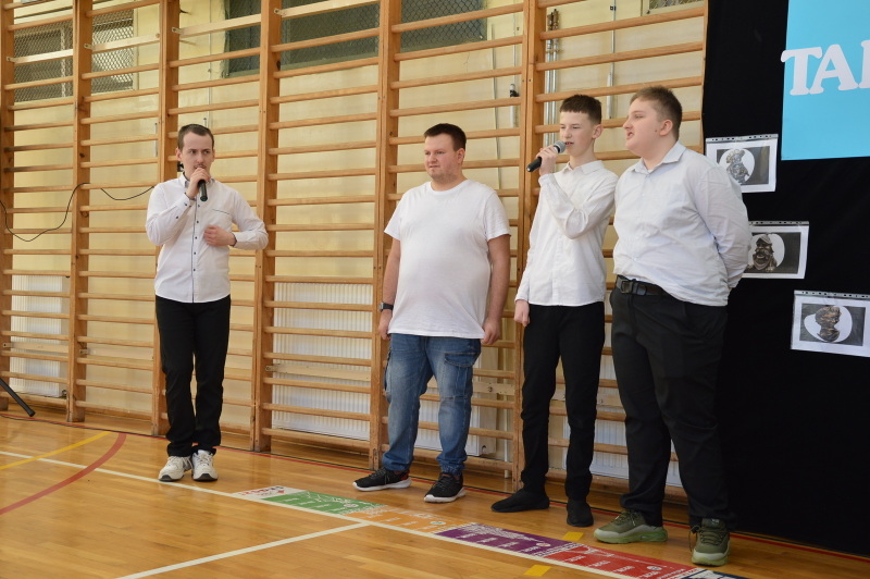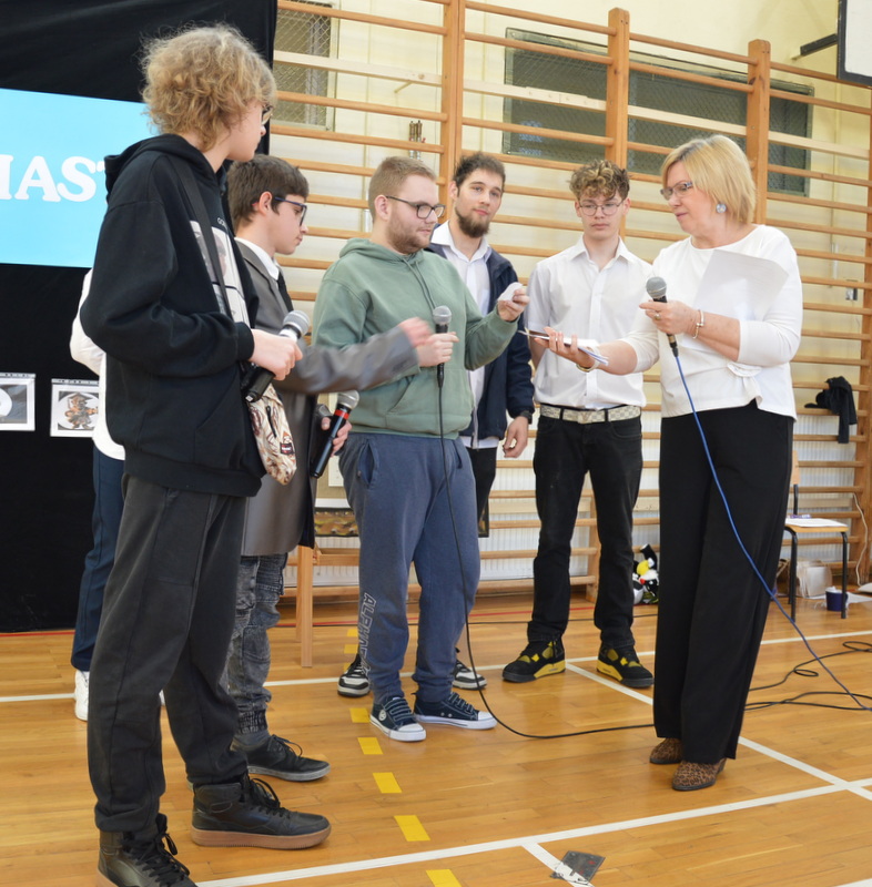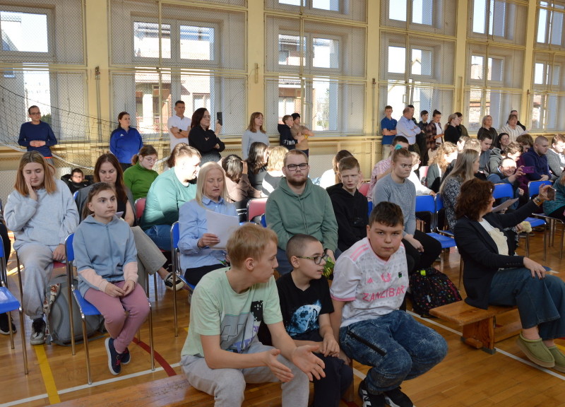 9 kwietnia gościliśmy w murach naszej szkoły piłkarzy z klubu Bruk-Bet Termalica Nieciecza. Odwiedzili nas zawodnicy, którzy na co dzień walczą o ligowe punkty: bramkarz Miłosz Mleczko oraz defensywny pomocnik „Słoni”, Maciej Ambrosiewicz. Nasi uczniowie udowodnili, że są prawdziwymi ekspertami od futbolu! Podczas spotkania padło wiele pytań. Sportowcy z ogromną cierpliwością i uśmiechem odpowiadali na każde z nich, dzieląc się swoimi doświadczeniami i motywując naszą młodzież do aktywności fizycznej. Wielu uczniów ubranych było w pomarańczowe barwy klubu. Największą radość sprawiły prezenty i momenty bliskości z idolami. Każdy uczeń otrzymał pamiątkowe zdjęcie piłkarzy z ich osobistym podpisem. Na zakończenie spotkania stanęliśmy do wspólnej fotografii, która z pewnością zajmie honorowe miejsce w naszej szkolnej galerii.